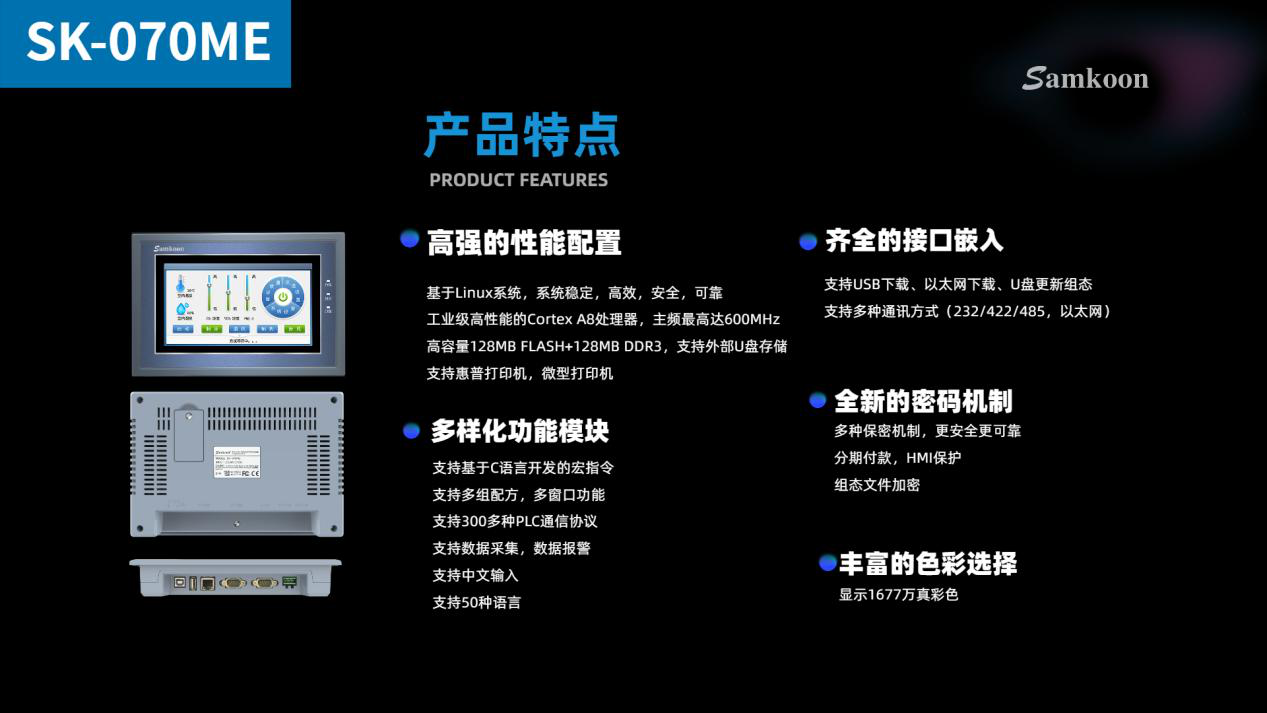 二. 系统配置 1、 系统电源:整机采用AC220V电源。 2、 触摸屏:SK-070ME